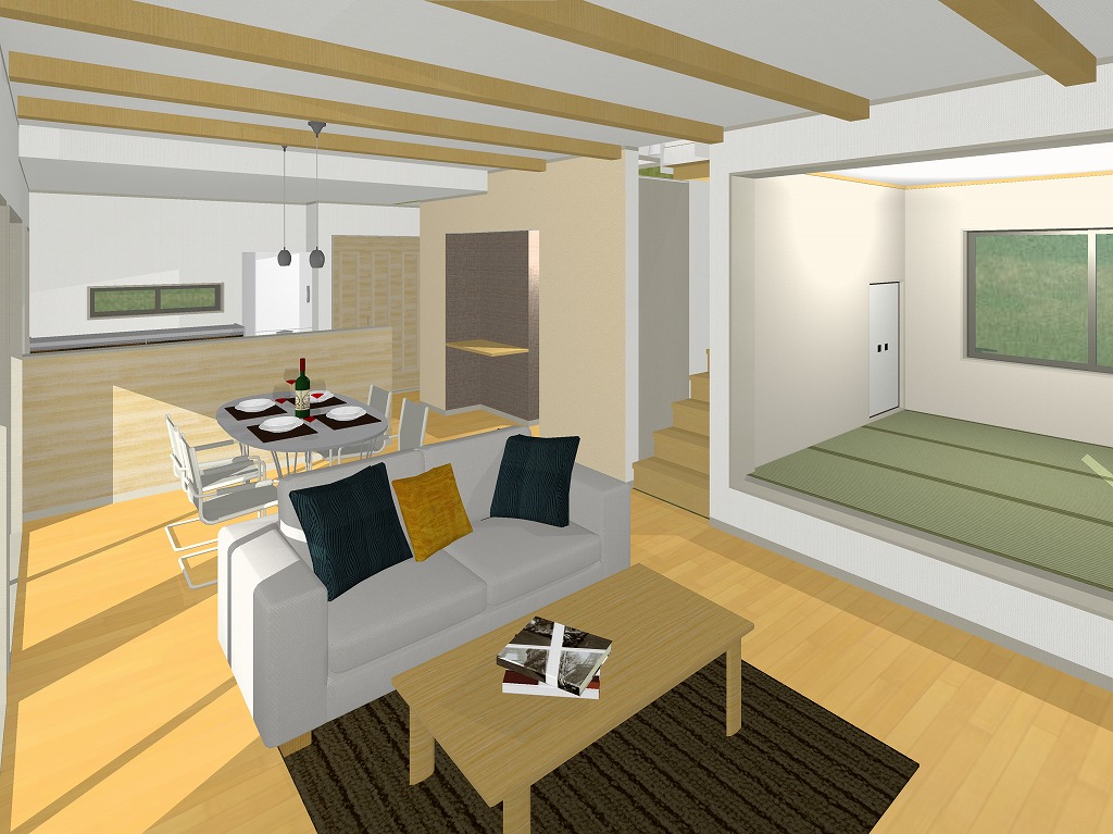 小上がりの和室が空間に変化をつけています。