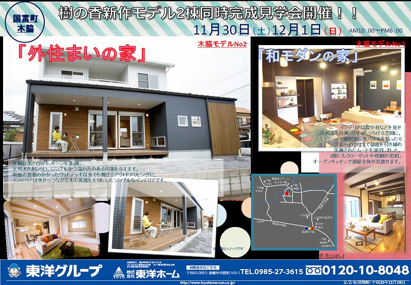 さて、今週末は吉村町今村、国富町木脇にてモデルハウス完成見学会を行います。