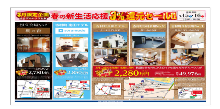 現在東洋ホームで販売しているモデルハウスを3月中にご成約の方に限り、